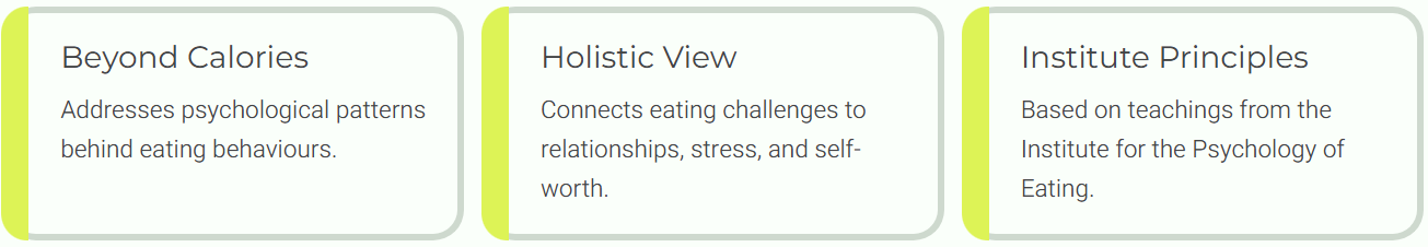 "Before I spoke to Cheryl I was stuck in a constant cycle of emotional eating, bingeing and guilt. I thought I just lacked willpower. What I really needed was a deeper understanding of my relationship with food. I love her simple, easy to implement habits"